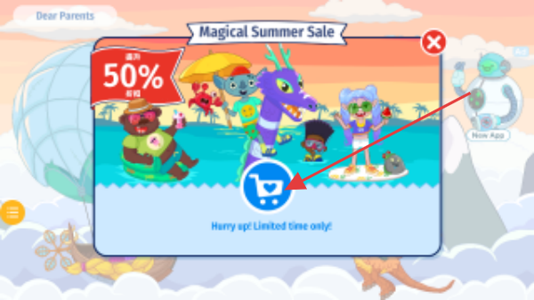 1、游戏内有Magical Summer Sale促销活动,折扣力度为50%,点击界面中的购物车图标可查看和参与活动,获取优惠商品。