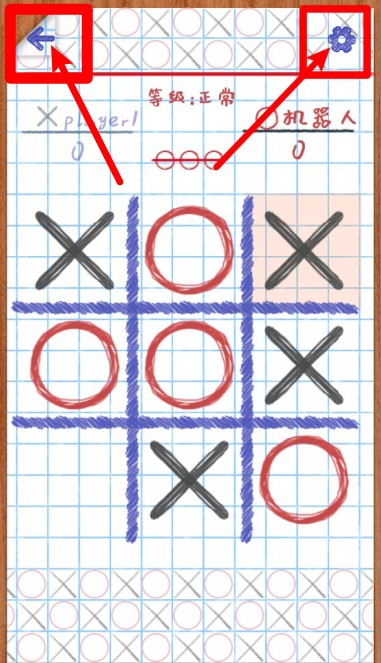 2.操作界面简洁直观,支持玩家轻松点击格子进行落子,界面配备返回和设置按钮,方便玩家调整游戏体验。