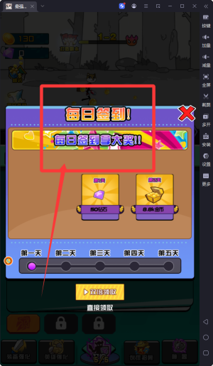 1、每日上线第一时间要查看您的签到奖励哦,得到大量资源,方便后续游戏体验哦。