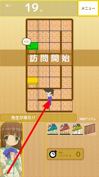 3、操控角色按指引移动,躲避老师,利用场景隐藏,同时留意时间和道具栏,完成躲避任务。