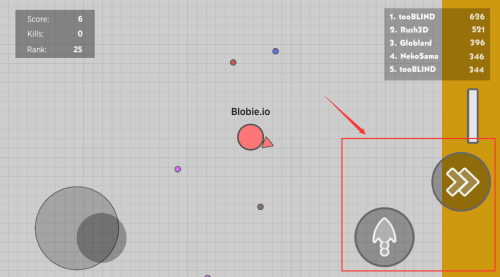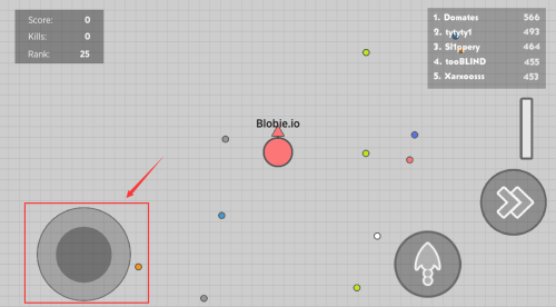 3、控制红框灰色物体,收集蓝色圆点成长。