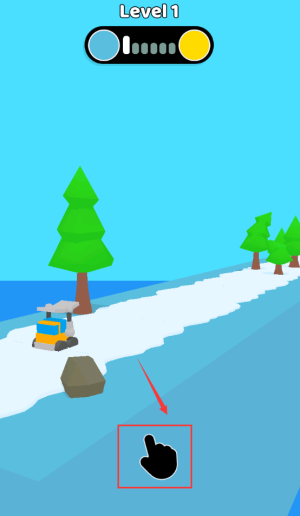 3、点击红框手指图标区域,开始控制雪球滚动操作。