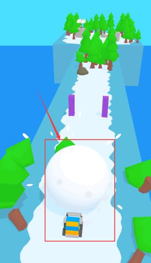 4、推动红框雪球前进,避开紫色障碍物完成关卡。
