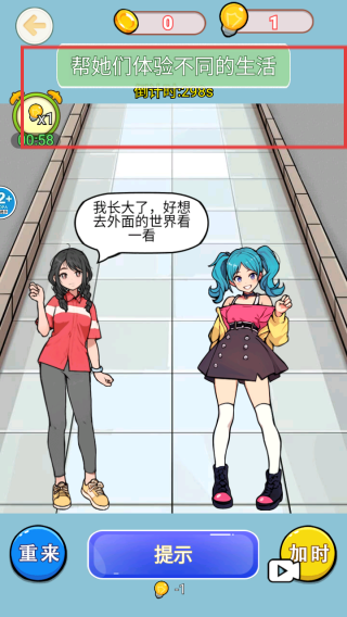 3、在游戏中,任务是帮她们体验不同的生活,你需要根据角色的需求和对话,如“我长大了,好想去外面的世界看一看”,帮助角色完成相应的目标和体验。