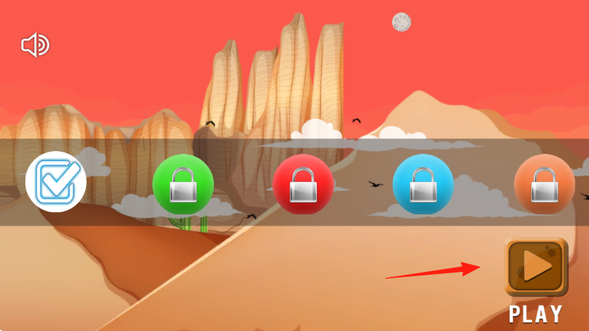 1、点击右下角红箭头指向PLAY按钮,选择已解锁关卡第一个带对勾,开始游戏。
