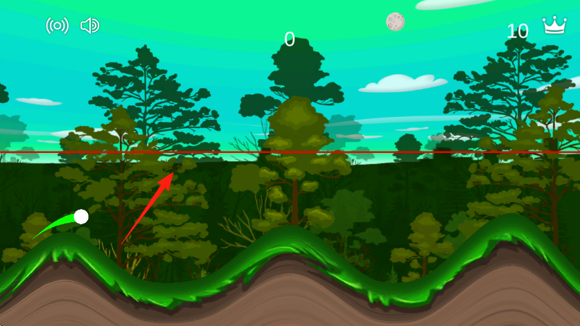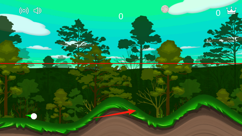 3、让白球借助地形,顺着红箭头指引,在森林背景关卡中,向目标方向弹射、滚动,完成挑战。