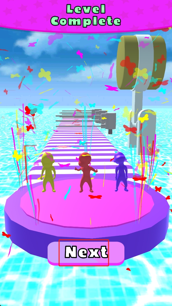 3、冲过终点线后,界面会弹出成绩面板,点击屏幕下方的粉色Next按钮,即可进入下一关。