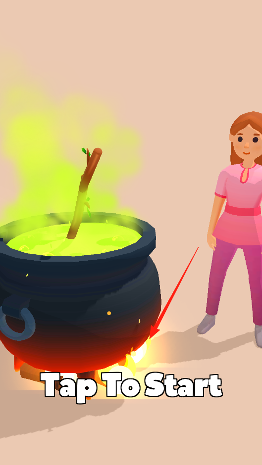 1、点击Tap To Start启动炼药,让药剂锅开始运作触发炼药流程,体验魔法炼制开局。