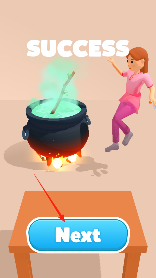 3、点击Next进入下一关,完成当前炼药后解锁新挑战,继续魔法冒险,体验关卡推进玩法。