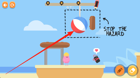 2、用画笔画出合适道路,让豌豆沿线路避开危险,根据途中情况调整画线思路,保障其安全。
