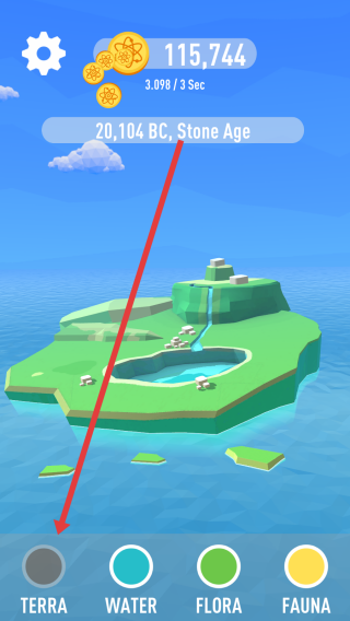 1、在游玩界面中,通过点击底部灰色TERRA按钮,触发岛屿地形生成,构建初始地貌框架。