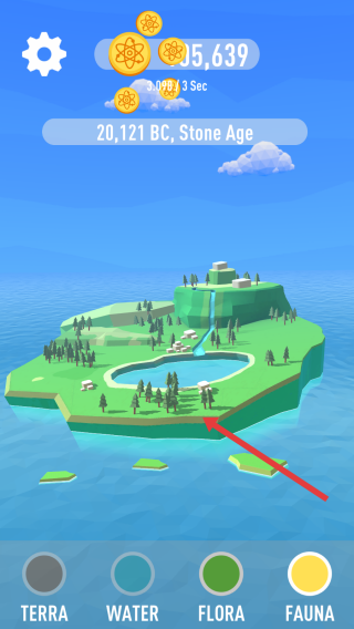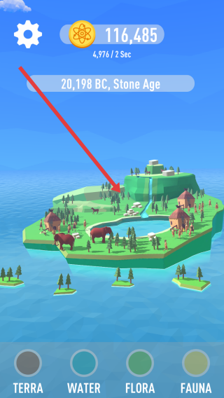 3、最后点击底部黄色FAUNA按钮,引入动物人类聚落完善生态,岛屿随时间自动产出金币。