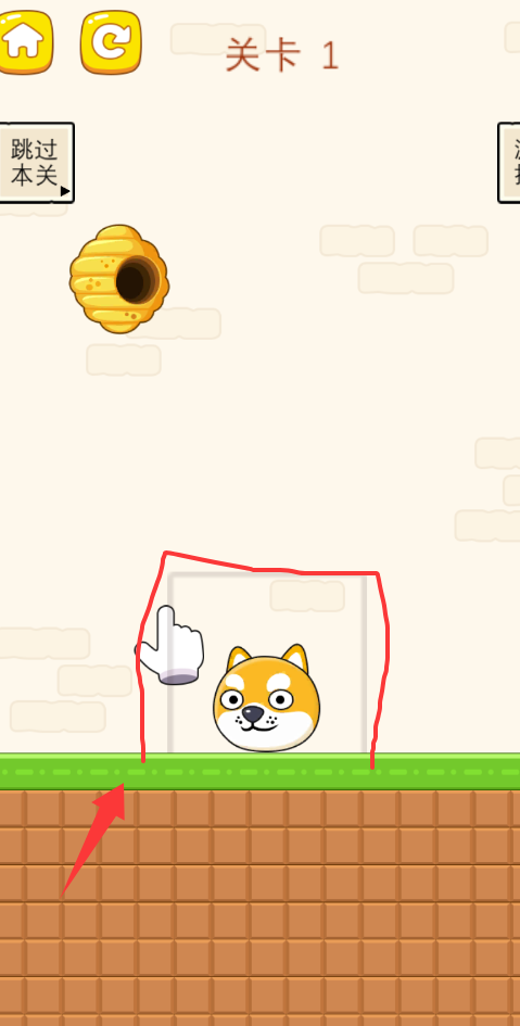 4、画一个框框保护里面的狗头,保护好就可以通关了。