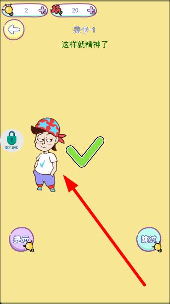 3、成功为角色穿上衣服,出现绿色对勾,确认通关,可继续挑战下一关,或返回主场景解锁新内容。