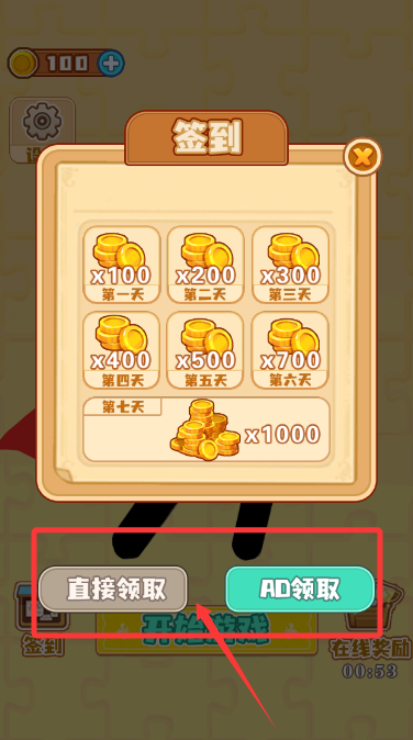 1、登录游戏后,点击签到页"立即领取",轻松获取每日登录金币。