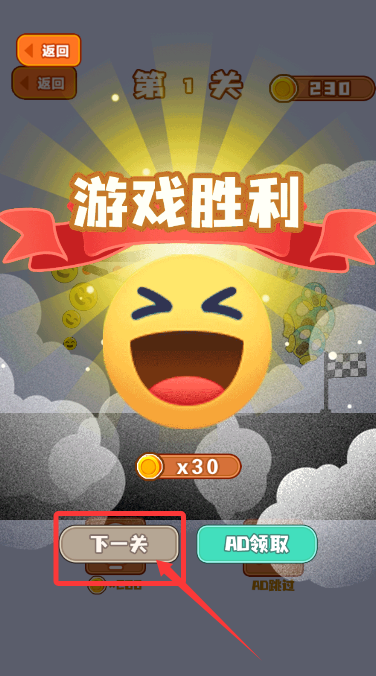 4、通关后点击"继续闯关"进入新挑战,还能观看广告额外领取资源奖励。