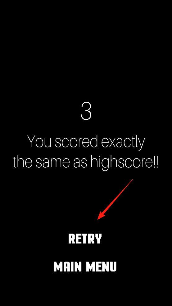 3、点击RETRY重新挑战,在分数与最高分持平后,选择重试再次进入游戏,尝试复刻或超越之前的表现。