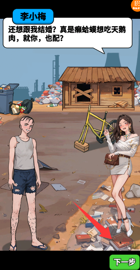 3、然后李小梅说二狗你癞蛤蟆想吃天鹅肉,点击下一步。