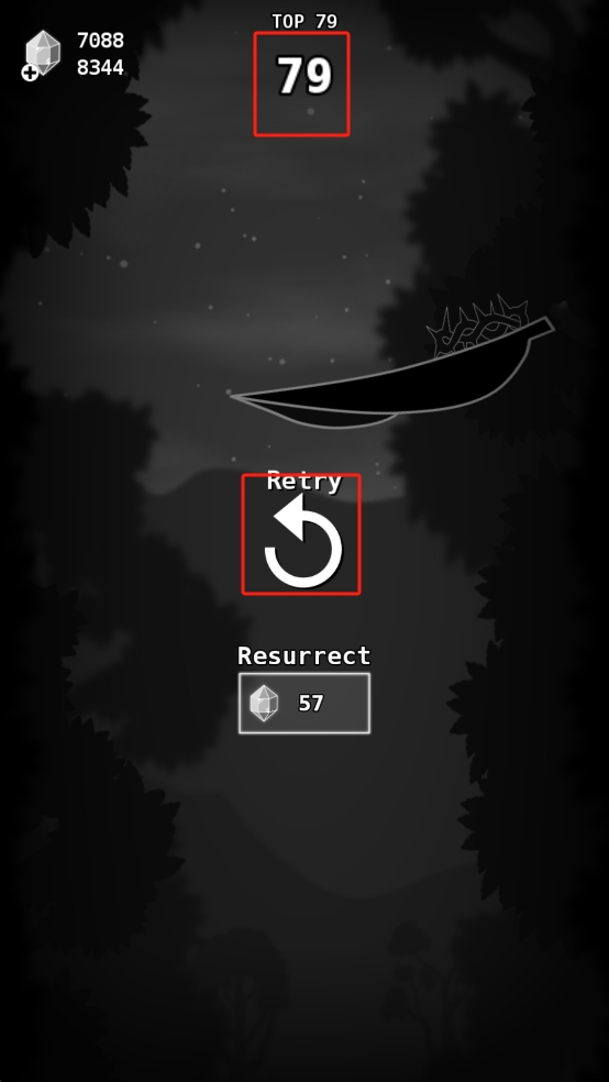 3、挑战结束后,点击中间的Retry按钮重启游戏,尝试突破当前的得分记录,重新开启攀爬挑战。
