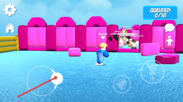 2、遇到粉色的充气障碍,灵活穿梭通过,跟紧人群或者找到空隙,避免被推挤或碰撞,向终点跑去。