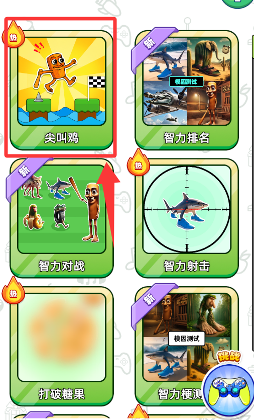 3、点击选择第一个尖叫鸡模式。