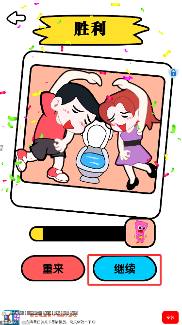 4、完成关卡后,点击右下角继续即可继续游玩。