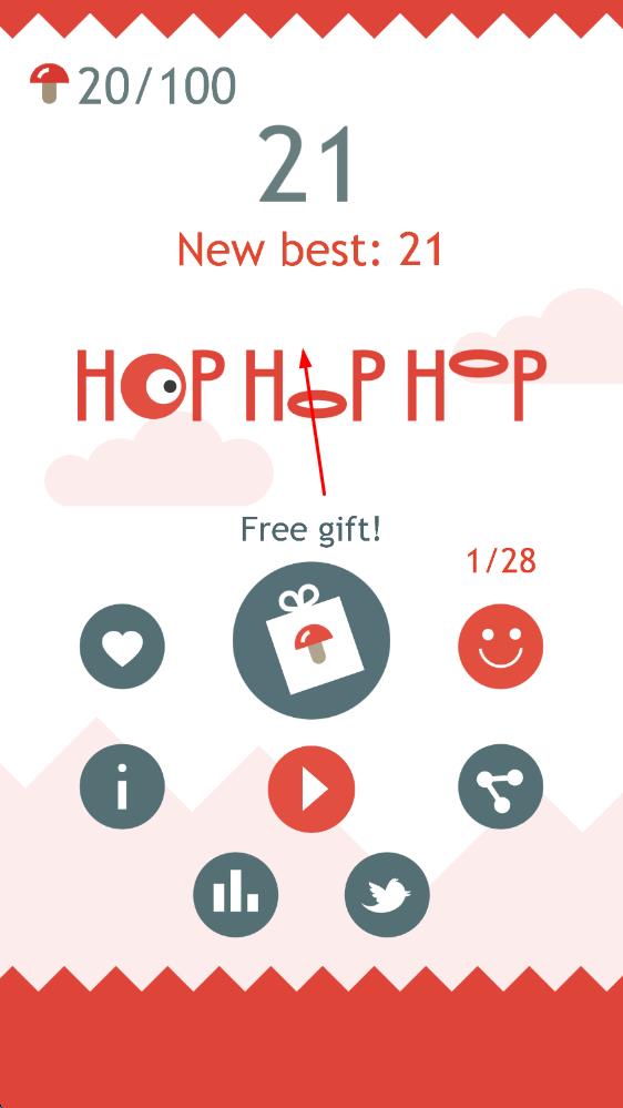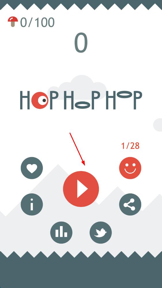 1、进入游戏,操控角色在初始场景中尝试跳跃,吃掉第一个蘑菇获得一分,熟悉点击屏幕控制上下跳动的基本手感。