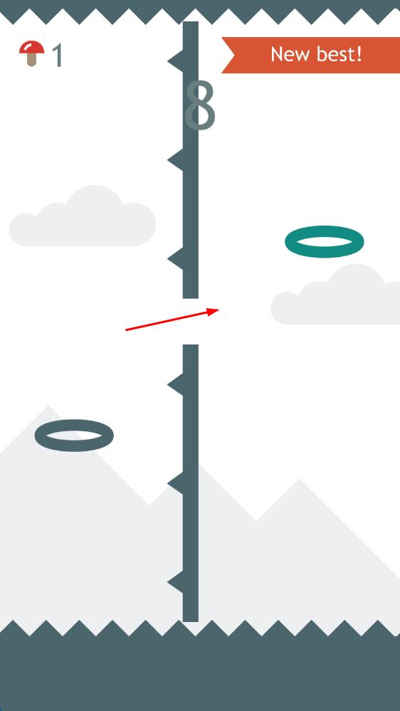 2、随着分数累积,场景节奏逐渐加快,需在快速变化中找准时机,从上往下跳进圆环得两分,或尝试从下往上跳多赚一分。
