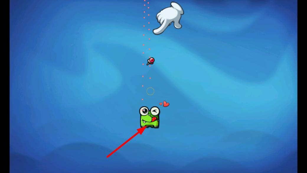 1、观察白色小球与糖果位置,拖动屏幕拉弹消除首个白色小球,尝试让糖果向小怪物方向移动,熟悉基础操作逻辑。