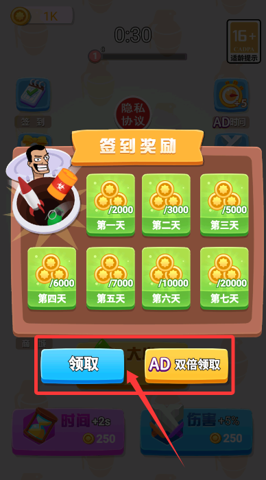1、启动游戏,点击每日签到页面,选择"立即领取"按钮,获取当日金币礼包。