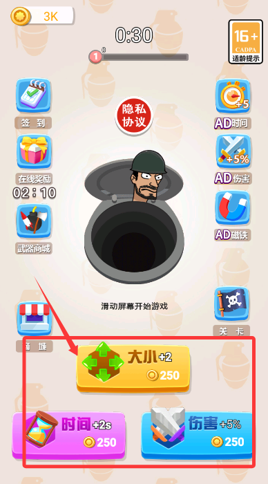 2、在主菜单使用积攒的金币,购买增益道具可提升黑洞性能。