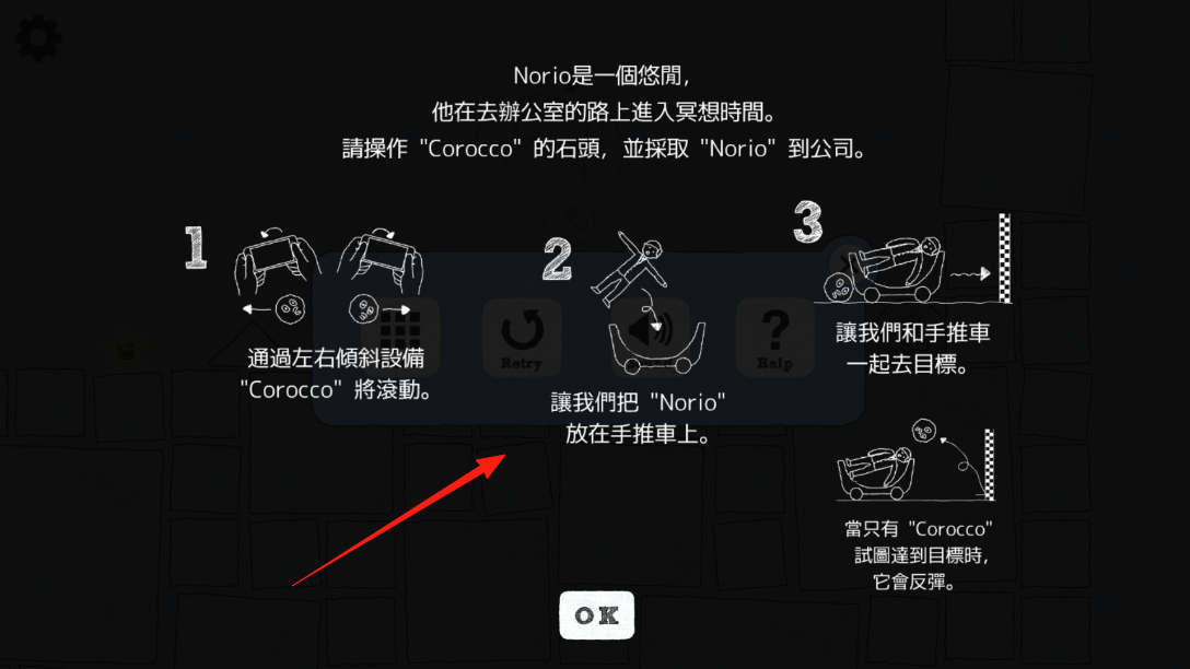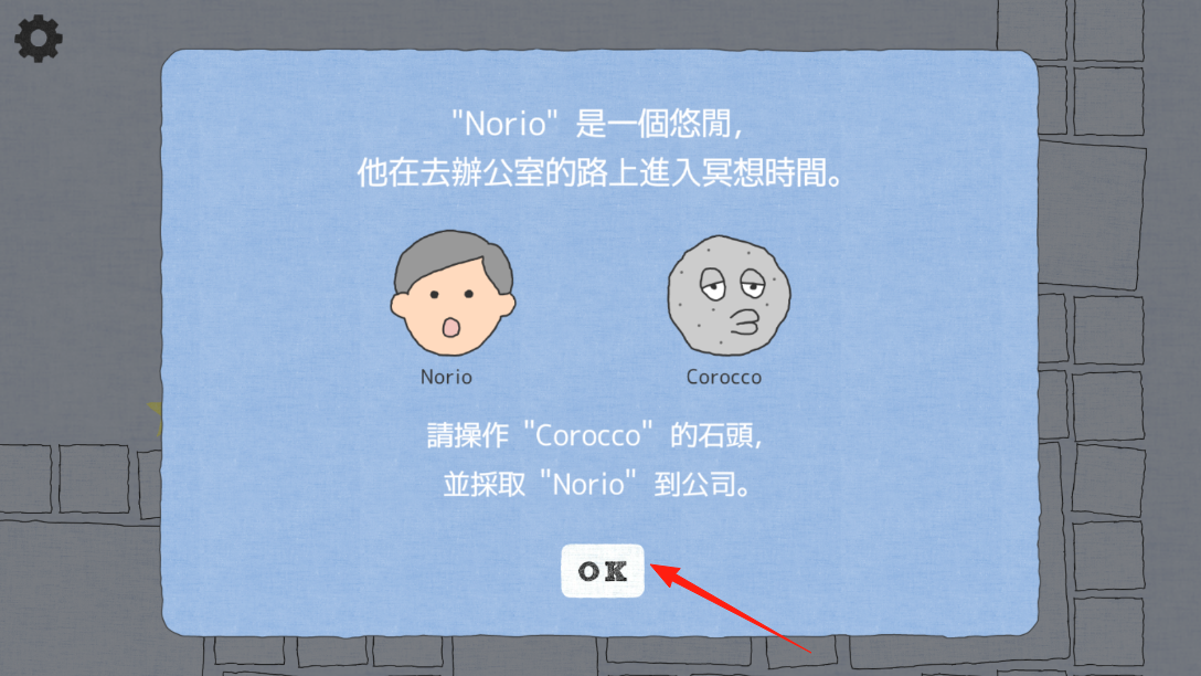 1、点击OK按钮开启游戏流程,操作名为Corocco的石头,尝试将Norio送往公司,启动关卡的核心运输任务。