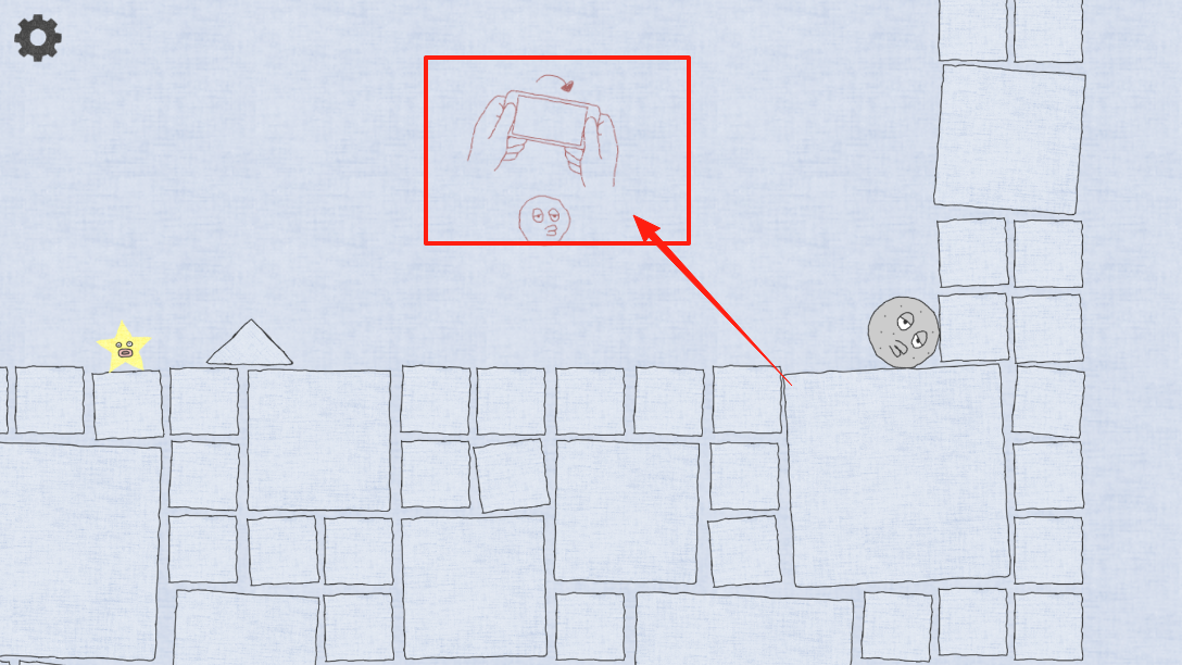 1、倾斜设备操控移动:通过向左或向右倾斜手机,操控石头状物体Corocco移动,利用这种方式在场景中穿梭适应不同为后续借助踏板移动做好准备。
