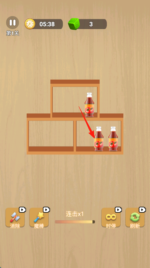 2、继续移动剩余物品,把番茄酱瓶集中到对应区域,达成连击,积累进度,注意时间限制。