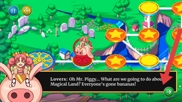 2、进入场景时,会与其他角色进行对话,了解剧情的走向,也可点击右下角的图标进入下一关。