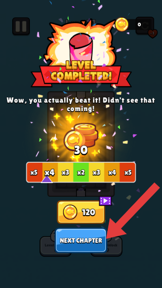 2、轻松的就通过关卡了,获得奖励金币30,可随机增加收益,但是后面就会越来越难。