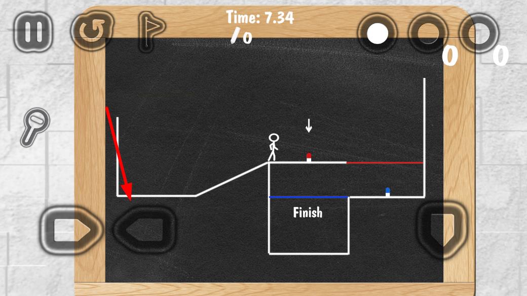 1、选择初始关卡,通过滑动屏幕控制火柴人移动、跳跃,熟悉基本操作,观察场景中的陷阱与可互动元素。