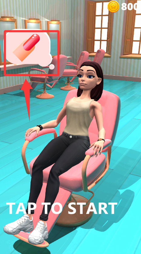 1、这位客人想美甲,点击红色框框的美甲键帮她美甲。