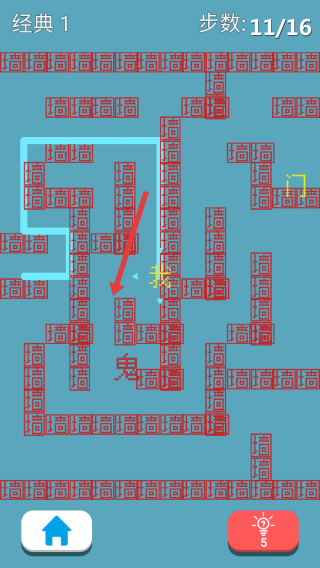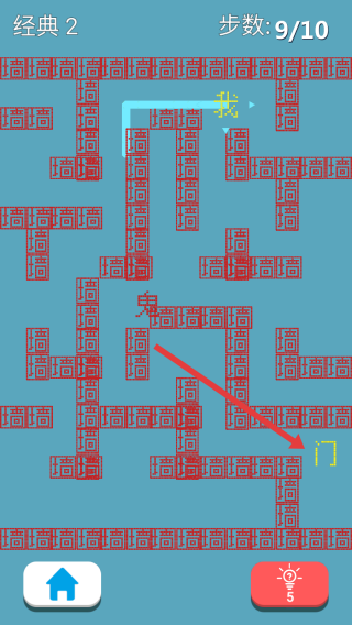 3、快到步数上限时,优先选短路径,点击屏幕控制移动,善用右下角提示灯泡解难题,找门逃生。