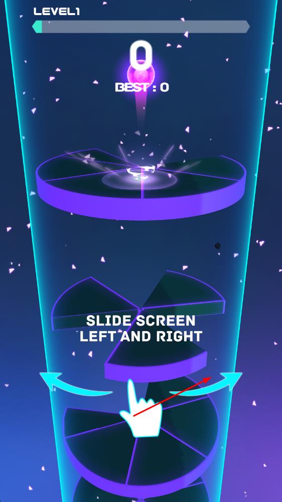 1、旋转跳跃操控:滑动手指控制球在螺旋塔上左右旋转,找准时机跳跃,避开沿途障碍,确保球不脱落边缘,向底部前进。