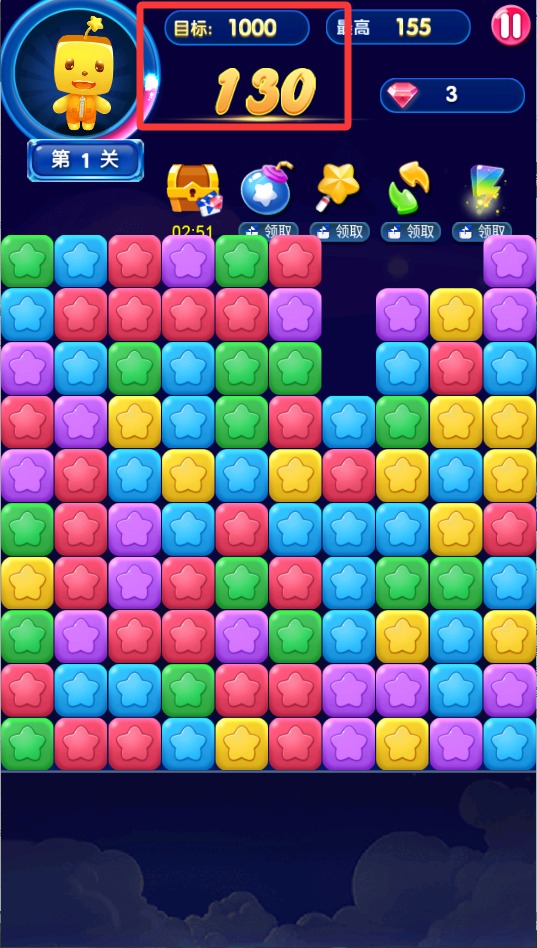 3、通过点击连接三个及以上相同图案的方块,每次成功消除都能累积分数并触发连锁消除效果。