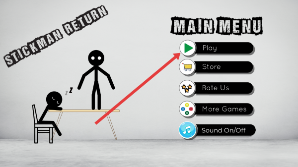 1、进入到游戏中,点击主菜单右侧绿色Play按钮,进入关卡选择界面,开启火柴人冒险流程。