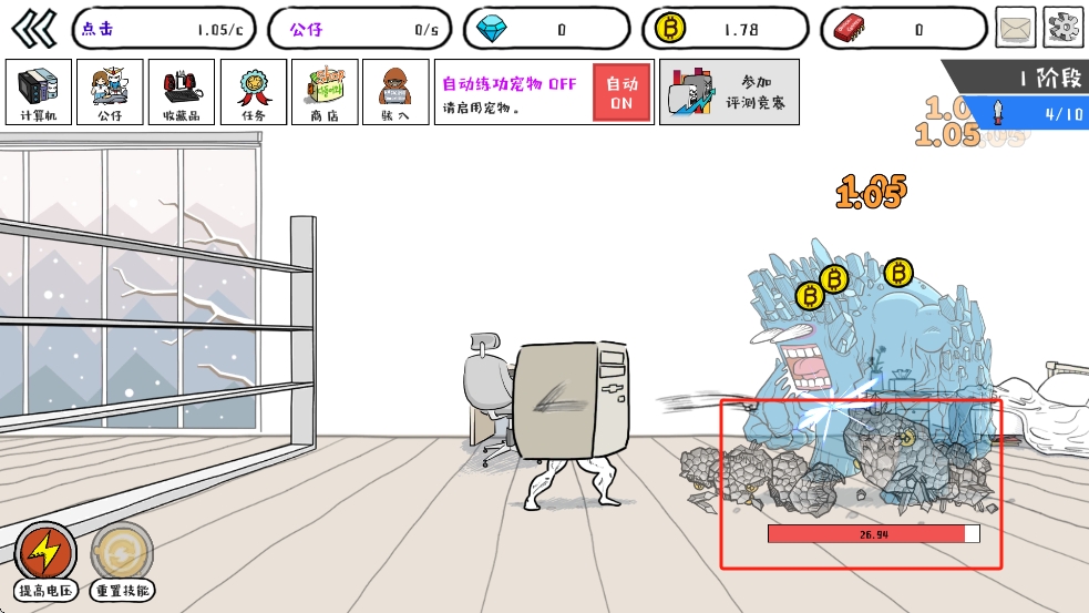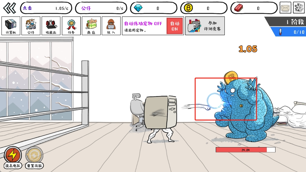 1、点击收集零件:当我们持续点击计算机不同的部位,会触发妖怪掉落零件,快速点击能让零件掉落更密集,注意区分有用零件和捣乱的妖怪,避免浪费操作。