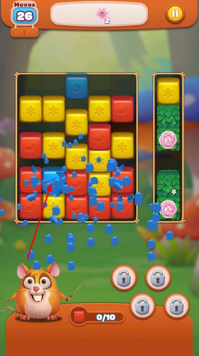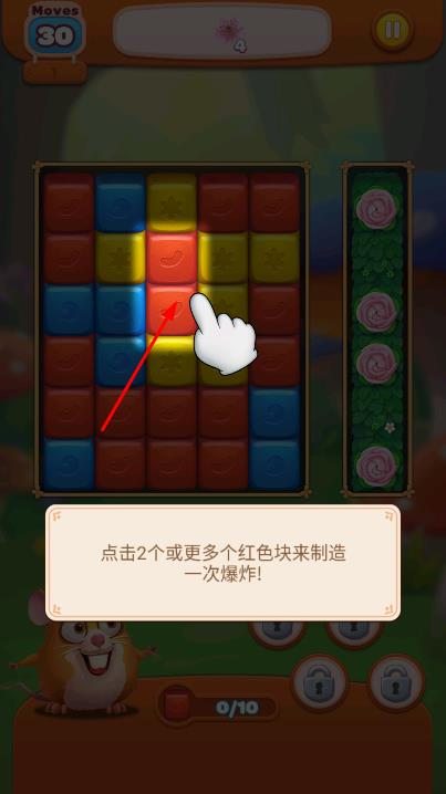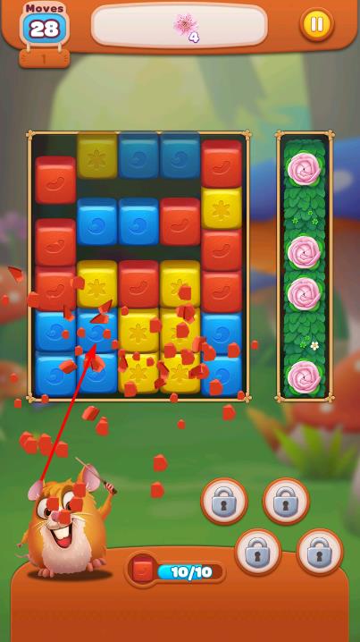 3、在规定的移动步数内,尽可能多地消除方块,收集指定数量的花朵,完成关卡任务,解锁下一关卡。