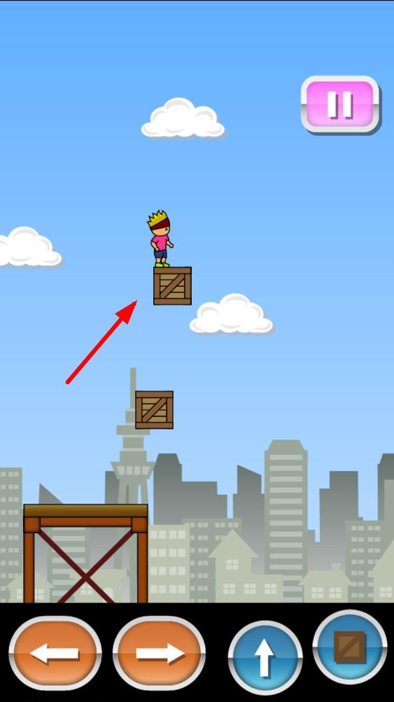 2、先判断与目标地点的距离,选择长按或短按投出箱子,待箱子落地后,操作小男孩跳跃到箱子上,再移动准备下一次投掷与跳跃。