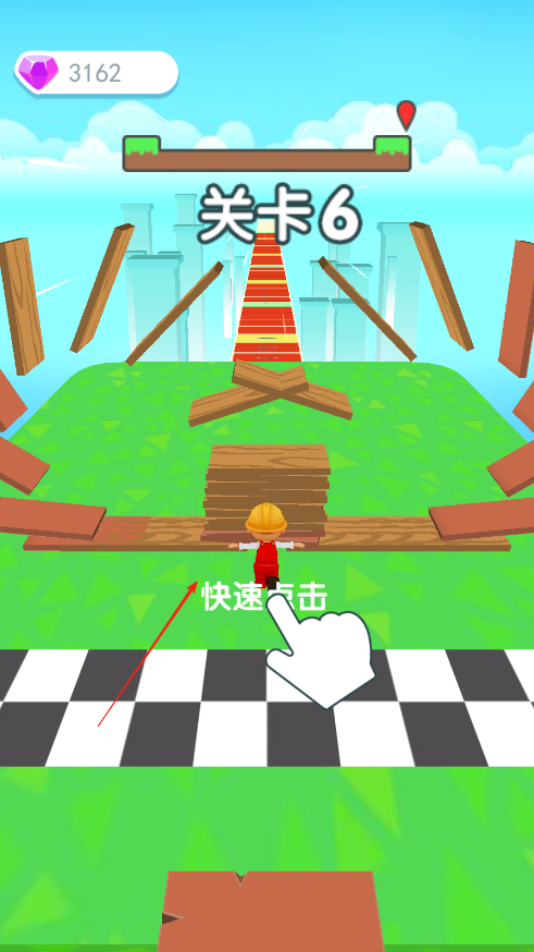 3、到达终点后快速点击将所有收集到的木板拼成一块长板子,从奖励区滑出去,直至耗完全部木板。