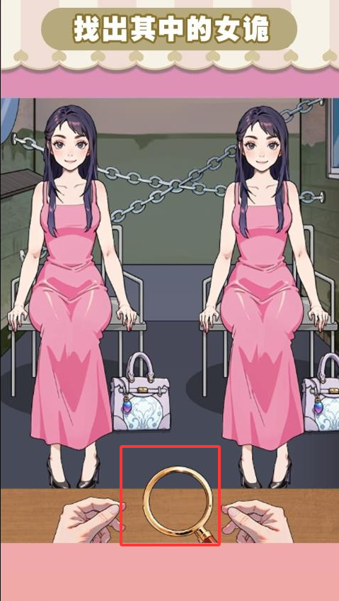 3、使用下方的放大镜,找出女鬼,即可进入下一关。