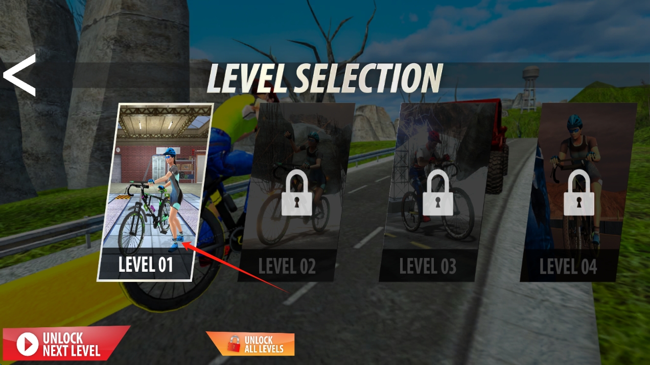 2、进入关卡选择界面后,点击LEVEL-01,开始第一关的比赛,后续可逐步解锁更多关卡。