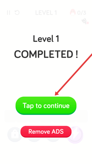 3、在关卡完成后,可以点击绿色Tap-to-continue按钮,确认通关,准备进入后续关卡或界面。