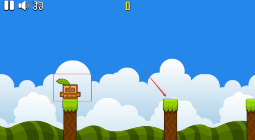 3、控制红框方块角色,瞄准中间柱子跳跃得分。